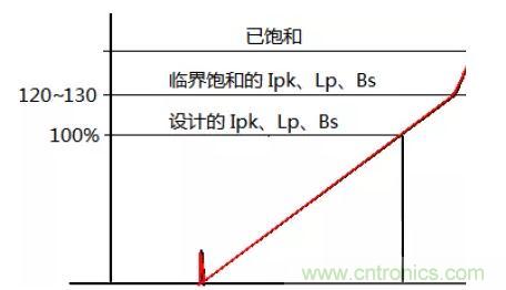 優(yōu)化方向是Bs值最優(yōu)化,約束條件是磁芯品質(zhì),可按 Bs(或原邊電感量 Lp)擴大20%~30%余量后 Ipk 波形可見臨界飽和跡象為判據(jù)確定Bs取值。更高的Bs取值,對應更小的氣隙、更小的漏感,更小的尖峰電壓、可能更高的整機效率。但太高的Bs取值會使上述余量更小、磁芯的品質(zhì)控制困難、成品率降低。