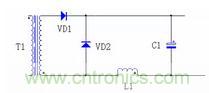 DC/DC 的整流二極管和續(xù)流管的反向恢復(fù)電流會(huì)導(dǎo)致二極管的反向電壓出現(xiàn)很高的電壓尖峰,下圖 7 是正激電路的輸出濾波電路。