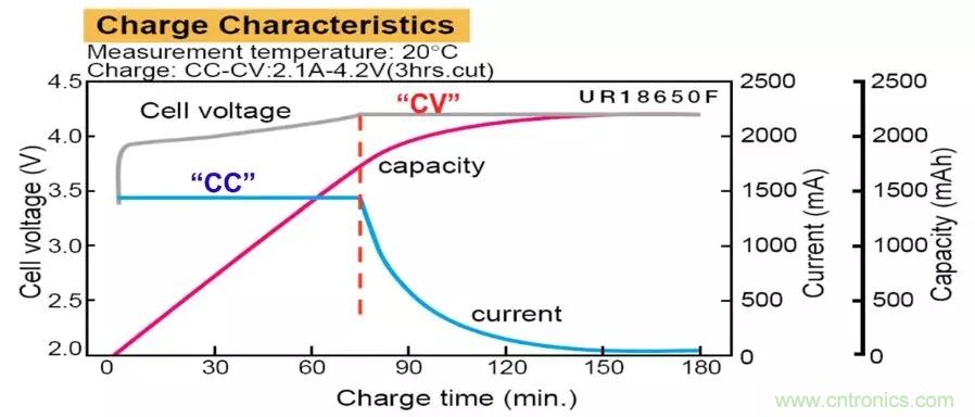 使用類似BQ4725A這類集成的充電管理芯片方案對鋰電池充電其實十分簡單。鋰電池直接連接到充電控制芯片BQ24725A的BAT管腳上,配置充電控制芯片的Charge Voltge,Charge Current,以及保護功能的Input Current Limit,使能充電功能即可。Charge Voltage(VCHG)是電芯的最大滿充電壓,Charge Current (ICHG) 是電芯允許的最大充電電流。典型的鋰電池充電特性如下圖所示,分為CC(Constant current)和CV(Constant Voltage) 兩個階段。CC階段恒定以最大充電電流持續(xù)對電池進行充電,此時單位時間充入電池的電量是恒定的Q=ICHG*T。隨著電池充入電量越來越多,電池電壓會上升,當(dāng)電壓上升到最大滿充電壓時候,充電芯片將控制輸出電壓為恒定的最大滿充電壓,此時電流開始逐漸減小,充入電量的增加速度慢慢減慢,總充入電量仍然在增加。直到電流減小到截止電流點,充電芯片停止充電,鋰電池達到充滿狀態(tài)。