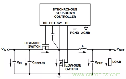 圖1:典型開關(guān)調(diào)節(jié)器(顯示交流和直流電流路徑)