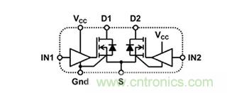 圖5:EPC 的 eGaN 集成驅(qū)動器 IC 包含兩個功率晶體管,各配有相應(yīng)的優(yōu)化型柵極驅(qū)動器。(圖片來源:EPC)