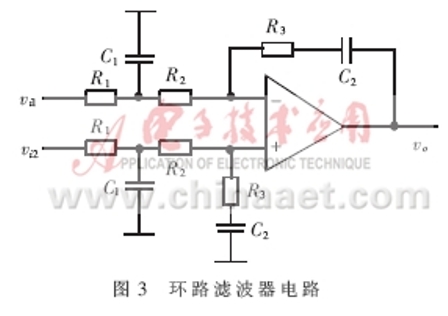 環(huán)路濾波器設計——環(huán)路濾波器形式和參數(shù)的選取是整個鎖相環(huán)電路設計與調試的關鍵。在壓控振蕩器和檢相器設計確定的情況下,環(huán)路濾波器的傳輸函數(shù)直接決定了整個環(huán)路的傳輸函數(shù),從而在很大程度上決定環(huán)路的噪聲性能、捕獲和跟蹤性能等。在鎖相環(huán)路設計中廣泛采用由有源比例積分濾波器組成的高增益二階環(huán)路,因為這種環(huán)路具有無條件穩(wěn)定性,而且有較大相位裕度。但是為了更好地抑制控制線中干擾、提高環(huán)路噪聲抑制性能,在高增益二階環(huán)的基礎上附加一級RC低通濾波器。其電路形式如圖3所示。
