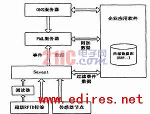 在圖3中,事件管理系統(tǒng)應(yīng)用在EdgeSavant(ES)上采集標(biāo)簽解讀事件,它與解讀器應(yīng)用程序通信,管理解讀器發(fā)送的事件流。EMS體系結(jié)構(gòu)中的“解讀適配器”和“解讀器接口”可看作一個通用的接口,對于EdgeSavant來講,由于解讀適配器直接或間接的與解讀器進行通訊,并收集解讀器探測到的事件,然后將這些事件寫入解讀器接口。對于InternalSavant來講,它是Edgesavants的父節(jié)點或上級,IS從他的下屬EdgeSavant中采集EPC數(shù)據(jù),因此“解讀適配器”和“解讀器接口”可看作是通用的網(wǎng)絡(luò)數(shù)據(jù)訪問接口。