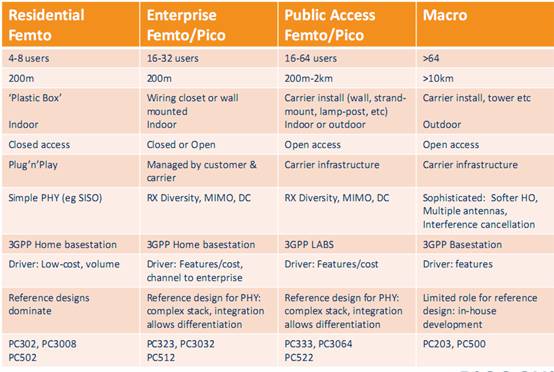 Picochip不僅提供低成本的家庭接入產(chǎn)品,還提供針對企業(yè)和公共接入的大規(guī)模64用戶系統(tǒng),滿足多層次全方面的市場需求。多樣化產(chǎn)品如下圖所示。