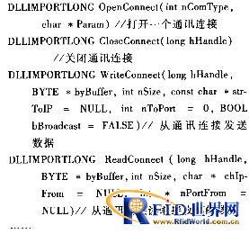 (1)底層數(shù)據(jù)通訊接口組件:負(fù)責(zé)數(shù)據(jù)通訊的鏈路層和物理層,是讀寫器與應(yīng)用軟件通訊的物理基礎(chǔ),在應(yīng)用邏輯上,與應(yīng)用通訊協(xié)議無關(guān)。所以,底層數(shù)據(jù)通訊應(yīng)獨(dú)立設(shè)計(jì)相對(duì)固定的接口,與高層應(yīng)用分離。