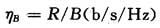 頻譜效率ηB又稱頻帶利用率,用來衡量通信系統(tǒng)的有效性。它定義為單位帶寬傳輸頻道上每秒可傳輸?shù)谋忍財?shù),單位是b/s/Hz。對于發(fā)送與接收系統(tǒng)的濾波器頻帶,取傳輸信道(含發(fā)送、接收濾波器)帶寬,即-20 dB帶寬。若傳輸信道的帶寬為B,數(shù)據(jù)傳輸率為R。則: