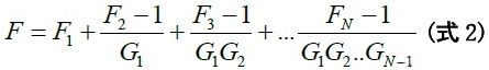 式中,F(xiàn)=總系統(tǒng)噪聲系數(shù),F(xiàn)n=每個(gè)子系統(tǒng)的噪聲系數(shù),Gn=每個(gè)子系統(tǒng)的增益(損耗)。