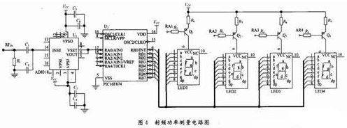 通過對射頻功率信號的測量理論分析,利用AD8318將射頻功率信號轉(zhuǎn)換為電壓信號,然后經(jīng)過PIC16F874單片機(jī)進(jìn)行計(jì)數(shù)、查表,由4位LED數(shù)碼顯示出來,實(shí)現(xiàn)了大動態(tài)范圍、高精度的射頻功率測量。