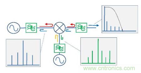 互調(diào)抑制一直是衡量混頻器設計的目標之一?;诋斍鞍雽w工業(yè)的發(fā)達,我們可以通過利用高動態(tài)范圍的場效應管成功實現(xiàn)了不同水平的互調(diào)抑制。然而,即使最好的混頻器也會在它的每個端口產(chǎn)生一些互調(diào)產(chǎn)物,并且這些互調(diào)產(chǎn)物會成為影響到周邊射頻鏈路中的因素。當傳統(tǒng)濾波器要濾除這些互調(diào)產(chǎn)物時,他們會被完全反射回到混頻器,并與基波信號重新合成而產(chǎn)生大量的假信號。這些假信號會因為可能落在所需的頻帶內(nèi)而通過濾波器輸出到中頻,進而限制了整個系統(tǒng)的動態(tài)范圍。