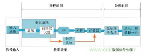 數(shù)字示波器捕獲信號的過程是典型的“采集-處理-采集-處理”過程,如圖1所示為數(shù)字示波器的采集原理,一個捕獲周期由采樣時間和(處理時間)死區(qū)時間組成,如圖2所示。