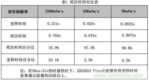 所以:捕獲時間=采樣時間+死區(qū)時間,而捕獲時間又等于波形刷新率的倒數(shù)。