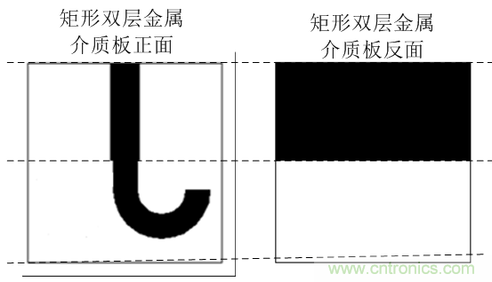 由上節(jié)分析可知,C形環(huán)探測(cè)信號(hào)的耦合度受制于耦合間距。在間距達(dá)到1mm的情況下,在10GHz才達(dá)到-19.45dB。為了增強(qiáng)耦合度,本節(jié)在C形環(huán)旁邊添加了與它相反的C形環(huán),達(dá)到電磁耦合互補(bǔ),增加耦合度的作用。其結(jié)構(gòu)示意圖如下圖3所示。