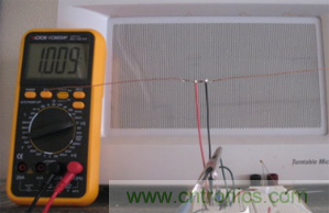 這樣就大功告成啦!我們可以把它放到微波爐附近來(lái)探測(cè)泄露出來(lái)的微波強(qiáng)度。