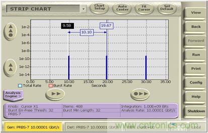 圖5:使用Strip chart功能記錄整個(gè)長時(shí)間老化過程誤碼變化