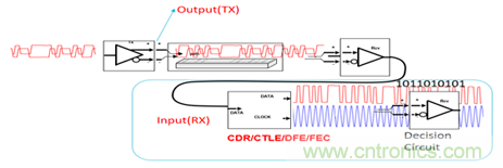 【導(dǎo)讀】在用戶進(jìn)行系統(tǒng)或者芯片測試的時(shí)候,一般主要驗(yàn)證幾個(gè)方面的性能和可靠性,包括系統(tǒng)發(fā)送端的信號質(zhì)量,鏈路的損耗/串?dāng)_,接收端的容限。如下圖1,一個(gè)鏈路系統(tǒng)的基本架構(gòu)。通常在發(fā)送端會(huì)使用FFE來補(bǔ)償鏈路的損耗,接收端會(huì)采用DFE/FFE等方法來進(jìn)行均衡,一些比較高速率的標(biāo)準(zhǔn)如PCIE 4.0/5.0,SAS4等還會(huì)采用FEC來進(jìn)行糾錯(cuò),當(dāng)然接收端還需要CDR來從串行信號里面進(jìn)行時(shí)鐘恢復(fù)得到同步時(shí)鐘來對信號進(jìn)行采樣。