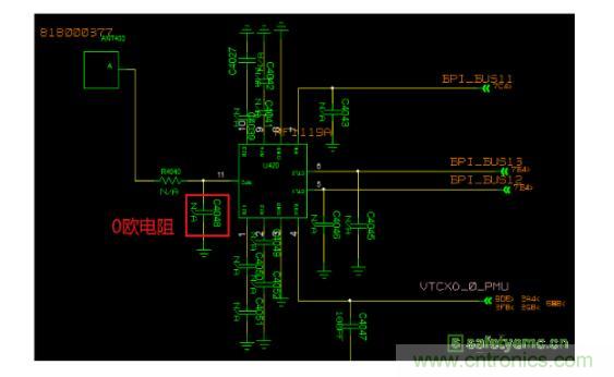 從測試結(jié)果來看,諧波超標很嚴重,這一點與天線區(qū)域的雜訊信號很相似,考慮到傳導(dǎo)嫌疑已經(jīng)排除,因此分析的重點集中到了天線區(qū)域的非線性器件。從如圖4所示原理圖可以看出,天線的調(diào)諧開關(guān)是正常工作的,由于天線開關(guān)本身是非線性器件,因此首先確認天線開關(guān)的影響。將天線開關(guān)旁路(天線仍然正常)如圖5所示,發(fā)現(xiàn)此時2.55GHz的雜訊可以降低到-55.7dBm左右,因此可以確定天線區(qū)域的雜訊就是調(diào)諧開關(guān)造成的。