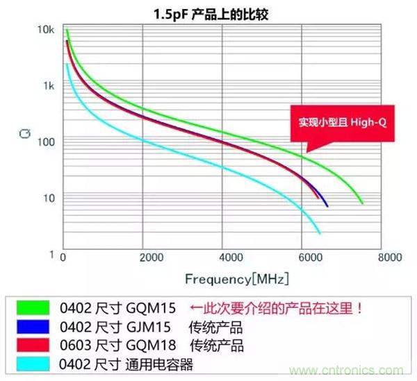 村田制作所的High-Q電容器除傳統(tǒng)的0603尺寸外,還新增0402尺寸到產(chǎn)品陣容。通過獨創(chuàng)的構(gòu)造、材料,即使靜電容量值很低,與標準規(guī)格產(chǎn)品(GRM系列)相比,也可實現(xiàn)高Q值。因兼具匹配用電容器的小型化和高Q值,有助于實現(xiàn)高頻PA電路設(shè)計的高密度化。