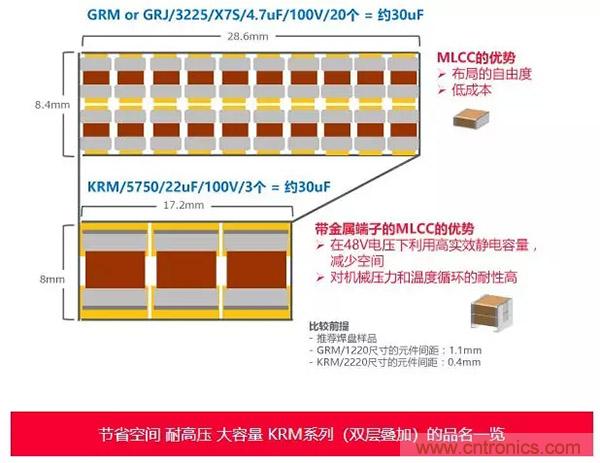 充分利用有限的基板面積。雙層疊加高容量電容器