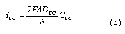 式中,iCO為CO氧化反應(yīng)的電流密度 CCO為CO的體積濃度;DCO為CO的擴散系數(shù)