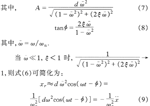 可見質(zhì)量塊m相對于機座的位移xr與機座的加速度成正比.此時可以通過測量質(zhì)量塊的位移變化來測量振動的加速度.