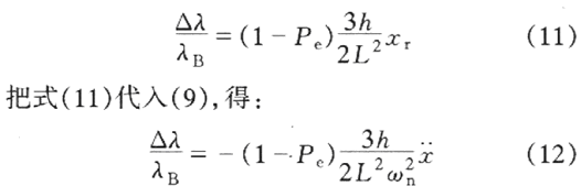 可見光柵的應(yīng)變ε與質(zhì)量塊相對于機座的位移xr之間成線性關(guān)系.另外,根據(jù)式(1),光纖光柵的布拉格波長變化與位移xr間的關(guān)系為: