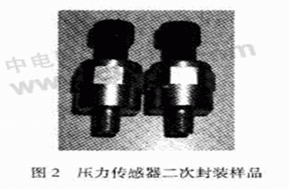 MEMS壓力傳感器的一一種重要封裝形式是采用充油的不銹鋼結(jié)構(gòu),稱為充油壓敏芯體,其基本制造工藝過程包括貼片、引線、封裝殼體、充油及二次組裝等。圖1是充油壓敏芯體結(jié)構(gòu)示意圖,圖2是壓力傳感器二次封裝樣品。