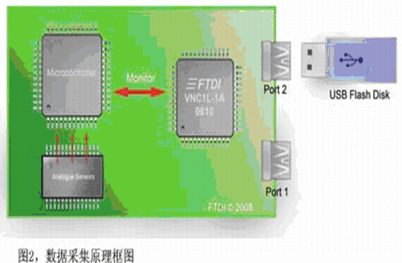 目前市場(chǎng)上有很多種數(shù)據(jù)采集設(shè)備可用于在PC上記錄數(shù)據(jù),如National Instrument的LabVIEW,不過這類設(shè)備的傳感器件開始越來越多地采用USB接口而不是RS232或其他傳統(tǒng)接口。過去在嵌入式系統(tǒng)中應(yīng)用USB設(shè)備需要性能相對(duì)較強(qiáng)的硬件,要帶有USB Host控制器接口、RTOS以及USB軟件驅(qū)動(dòng),結(jié)果因USB Host功能實(shí)施成本的原因設(shè)計(jì)工程師一直都不太愿意在小型8位或16位MCU系統(tǒng)上增加USB設(shè)備。但隨著最新一代智能USB Host控制器IC的推出,與MCU配合使用不僅可為PC應(yīng)用使用USB數(shù)據(jù)采集設(shè)備,而且還可將數(shù)據(jù)存儲(chǔ)在低成本高容量的閃存盤上。