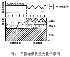 光電脈搏傳感器的研制和噪聲分析手指組織可以分成皮膚、肌肉、骨骼等非血液組織和血液組織, 其中非血液組織的光吸收量是恒定的, 而在血液中, 靜脈血的搏動相對于動脈血是十分微弱的, 可以忽略, 因此可以認(rèn)為光透過手指后的變化僅由動脈血的充盈而引起的, 那么在恒定波長的光源的照射下, 通過檢測透過手指的光強(qiáng)將可以間接測量到人體的脈搏信號。
