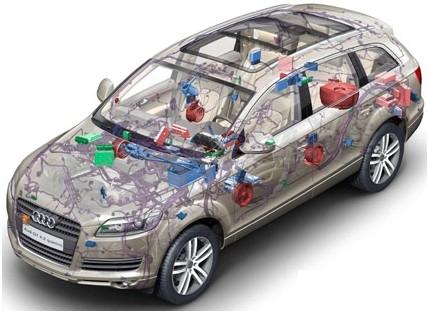 圖2:在現(xiàn)代車輛中,常常需要10到20條不同的數(shù)據(jù)總線將不同的裝配連接到一起。