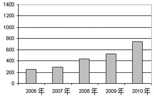 2006-2010年MEMS手機市場規(guī)模 單位:百萬美元