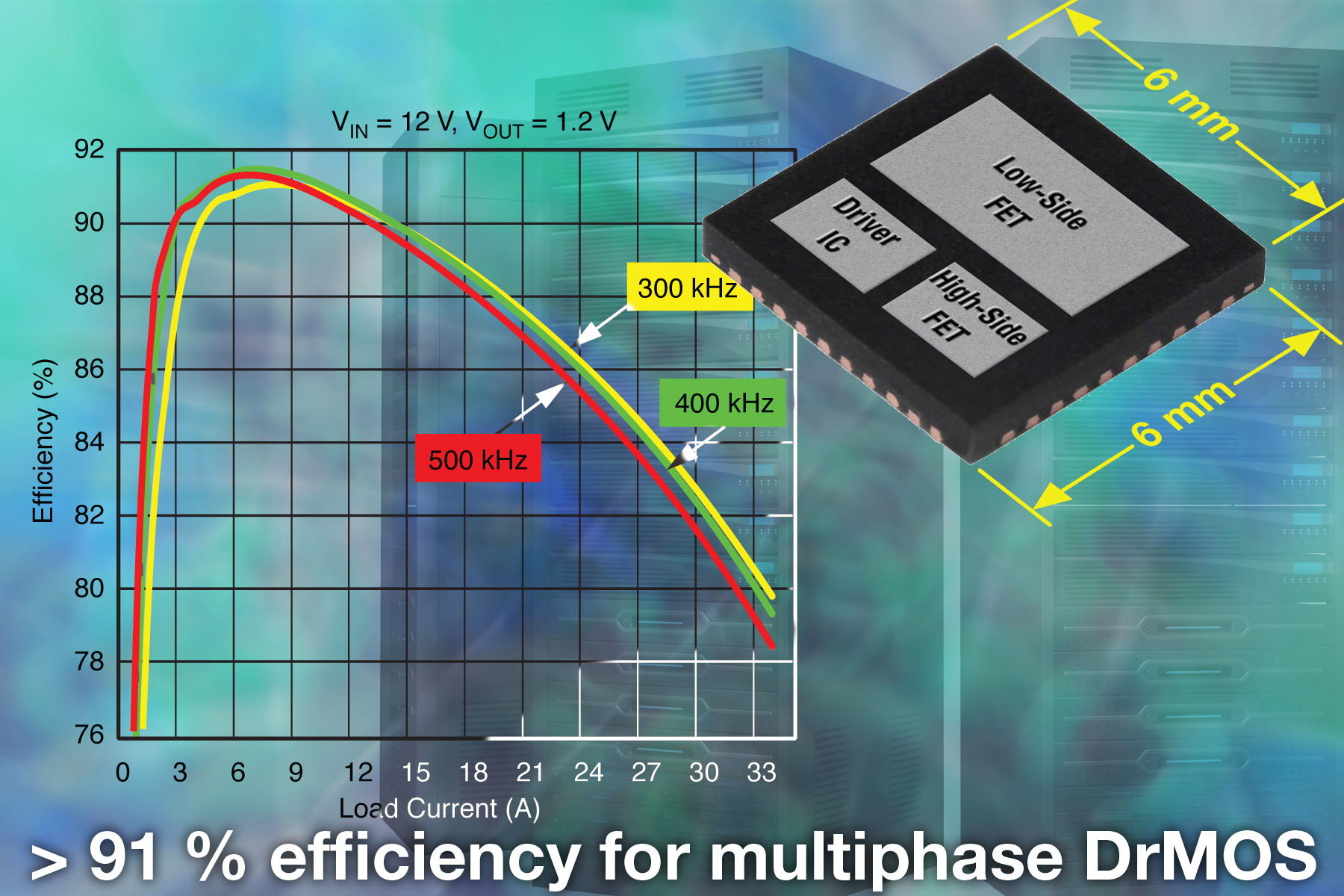 通過集成驅(qū)動(dòng)IC和功率MOSFET,SiC762CD減少了功率損耗和與高頻分立功率級(jí)相關(guān)的寄生阻抗效應(yīng)。設(shè)計(jì)者可以采用高頻開關(guān)以改善瞬態(tài)響應(yīng),節(jié)省輸出濾波器的成本,在多相Vcore應(yīng)用中實(shí)現(xiàn)盡可能高的效率密度。