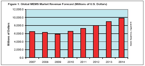 - MEMS市場在2010年結(jié)束下滑強力回升
