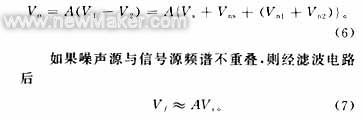 設(shè),Vs為傳感器的信號(hào)電壓;Vn1、Vn2為外部噪聲源在電纜線上的感應(yīng)噪聲電壓;Vns為電路噪聲,因此,差分放大器輸出電壓Vo為: