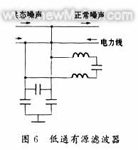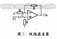 通常,經(jīng)典濾波器用得最多。濾波電路可以由無(wú)源元件R、L、C組成,如圖5所示的線路濾波器;也可以包含有源元件(如圖6所示),它的優(yōu)點(diǎn)主要是具有一定的信號(hào)放大和帶負(fù)載能力。濾波電路從功能上又可分為四類(lèi):低通(LP)、高通(HP)、帶通(BP)、帶阻(BS)濾波器。每一種又有模擬(AF)與數(shù)字(DF)濾波器兩種形式。由于傳感器信號(hào)一般為緩慢變化的信號(hào),故選用低通濾波器抑止高頻噪聲信號(hào)最多。通常如巴特沃斯濾波器、切比雪夫?yàn)V波器、橢圓濾波器等。常用低通濾波電路如圖6所示。
