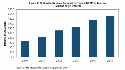 據(jù)IHS公司的最新MEMS市場(chǎng)研究報(bào)告,由于市場(chǎng)對(duì)寬帶互聯(lián)網(wǎng)服務(wù)的需求持續(xù)激增,預(yù)計(jì)2011年以及隨后幾年光MEMS銷售額強(qiáng)勁增長(zhǎng)。光MEMS是超高速光纖網(wǎng)絡(luò)中的關(guān)鍵部件。