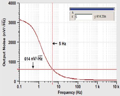 利用圖6所示原始電路,我們使用最初指定的一些噪聲值,可以通過方程式7再次估算出5Hz的噪聲。