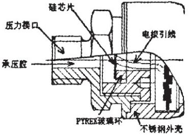 如圖3的敏感芯體封接在金屬螺紋底座上形成進(jìn)壓的腔道后成為一個(gè)可安裝的壓力測(cè)量前端,見圖4。