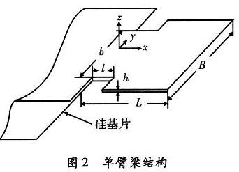 壓阻式加速度傳感器的彈性元件一般采用硅梁外加質(zhì)量塊,質(zhì)量塊由懸臂梁支撐,并在懸臂梁上制作電阻,連接成測量電橋。在慣性力作用下質(zhì)量塊上下運(yùn)動,懸臂梁上電阻的阻值隨應(yīng)力的作用而發(fā)生變化,引起測量電橋輸出電壓變化,以此實(shí)現(xiàn)對加速度的測量。