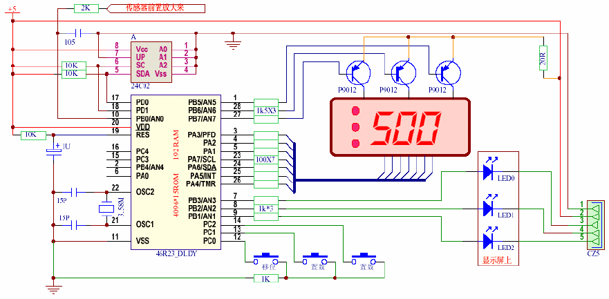電路中的 24C02 是電存儲器,可以把使用者設(shè)定的控制值可靠地保存起來,即使掉電也不會丟失數(shù)據(jù)。