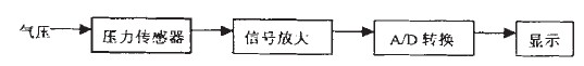 下面以測(cè)量輪胎氣壓為例詳細(xì)闡述氣壓傳感器在汽車(chē)輪胎方面的應(yīng)用。此種設(shè)計(jì)可做成一種便攜式的裝置,測(cè)量時(shí)將氣壓傳感器的表置于輪胎氣門(mén)嘴上,這時(shí)胎壓作用于傳感器的膜片上, 通過(guò)壓阻效應(yīng)和系列變換輸出微弱的電壓信號(hào),將電壓信號(hào)進(jìn)行相應(yīng)處理顯示電壓值。由此可知不同的氣壓對(duì)應(yīng)著不同的電壓值,即氣壓值和電壓值是一一對(duì)應(yīng)的,從而間接測(cè)量了氣壓值。胎壓測(cè)量電路方框圖如圖4所示。