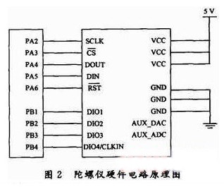 陀螺儀硬件電路原理圖如圖2所示,選用LM3S8962自帶的SPI硬件接口對(duì)ADIS16365進(jìn)行操作,在電路設(shè)計(jì)中只需要直接將LM3S8962的SPI硬件I/O接口與ADIS16365相應(yīng)的接口連接起來?! ?/p>
