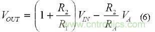 如果相對于原始等式中的VREF取VOUT和VA,則可得到相同的結(jié)果。 VA(MAX)~VREF也應(yīng)替換等式(7)中的VA(MAX)。