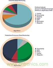 與其形成鮮明對比的是,工業(yè)導(dǎo)航定位推算方案是針對系統(tǒng)性能定義而設(shè)計的,要根據(jù)具體精度要求選擇組件。更高質(zhì)量的慣性傳感器允許其發(fā)揮主要作用,適當(dāng)利用其他傳感器來縮小不確定性差距。比起推算/估算可靠的傳感器讀數(shù)間的位置,算法在概念上更關(guān)注最佳權(quán)重、切換和傳感器互補,以及對于環(huán)境和實時運動動力學(xué)的認識。