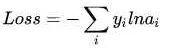 然而實際上x對應的概率其實是第一類,比如[1,0,0],現(xiàn)在拿到的概率(或者可稱為似然)是[0.88、0.12、0]。那么它們之間究竟有多大的差距呢?這個差距就是損失值loss。如何獲取到損失值呢?在softmax里我們用互熵損失函數(shù)計算量最小(方便求導),如下所示: