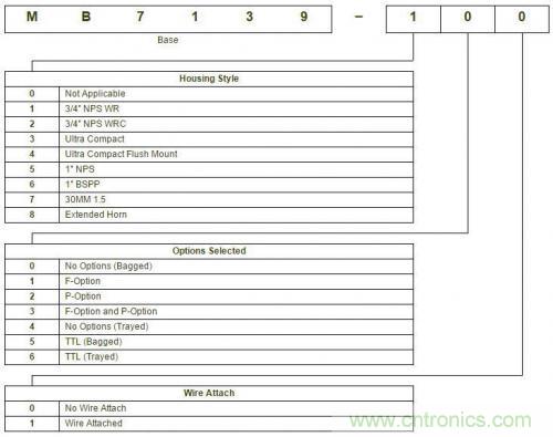 所有的零件號碼都是一個(gè)六字符的組合,后面是一個(gè)破折號和一個(gè)三位數(shù)的產(chǎn)品代碼。請查看下面的表格,以獲得關(guān)于三位數(shù)產(chǎn)品代碼的更多信息.