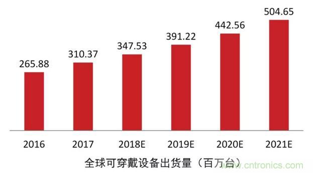 各類可穿戴設(shè)備市場(chǎng)的預(yù)測(cè)示意圖
